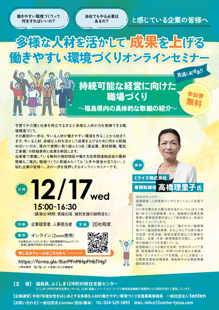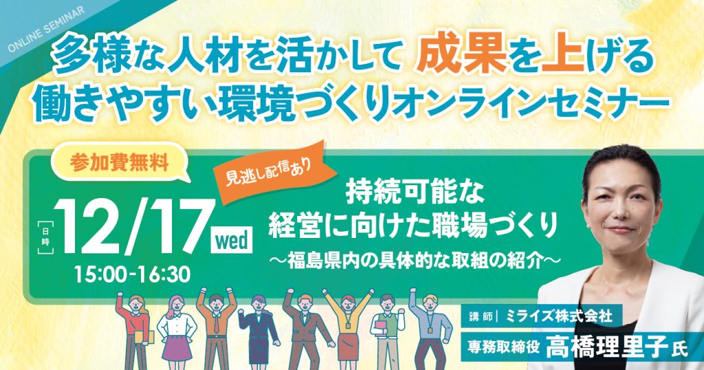 【参加企業募集】2025.12.17 第3回 多様な人材を活かして成果を上げる これからの職場づくりオンラインセミナー