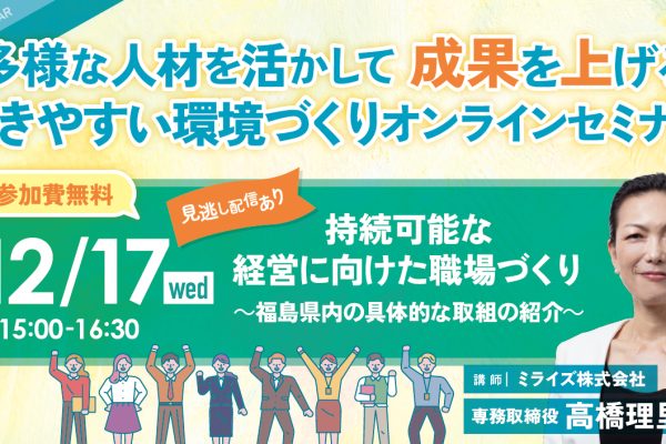 【参加企業募集】2025.12.17 第3回 多様な人材を活かして成果を上げる これからの職場づくりオンラインセミナー